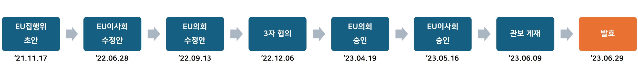 동 법령은 지속 가능한 경제 전환 실현을 위한 그린딜 정책의 주요 이니셔티브인 ‘2030 EU 산림전략(New EU Forest Strategy for 2030)’의 일환으로 '21년부터 추진