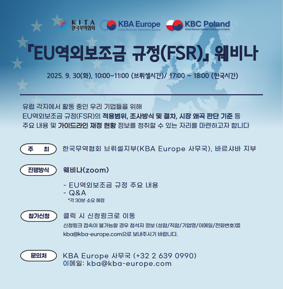 「EU역외보조금 규정(FSR)」웨비나 참가 안내 (9/30,화)