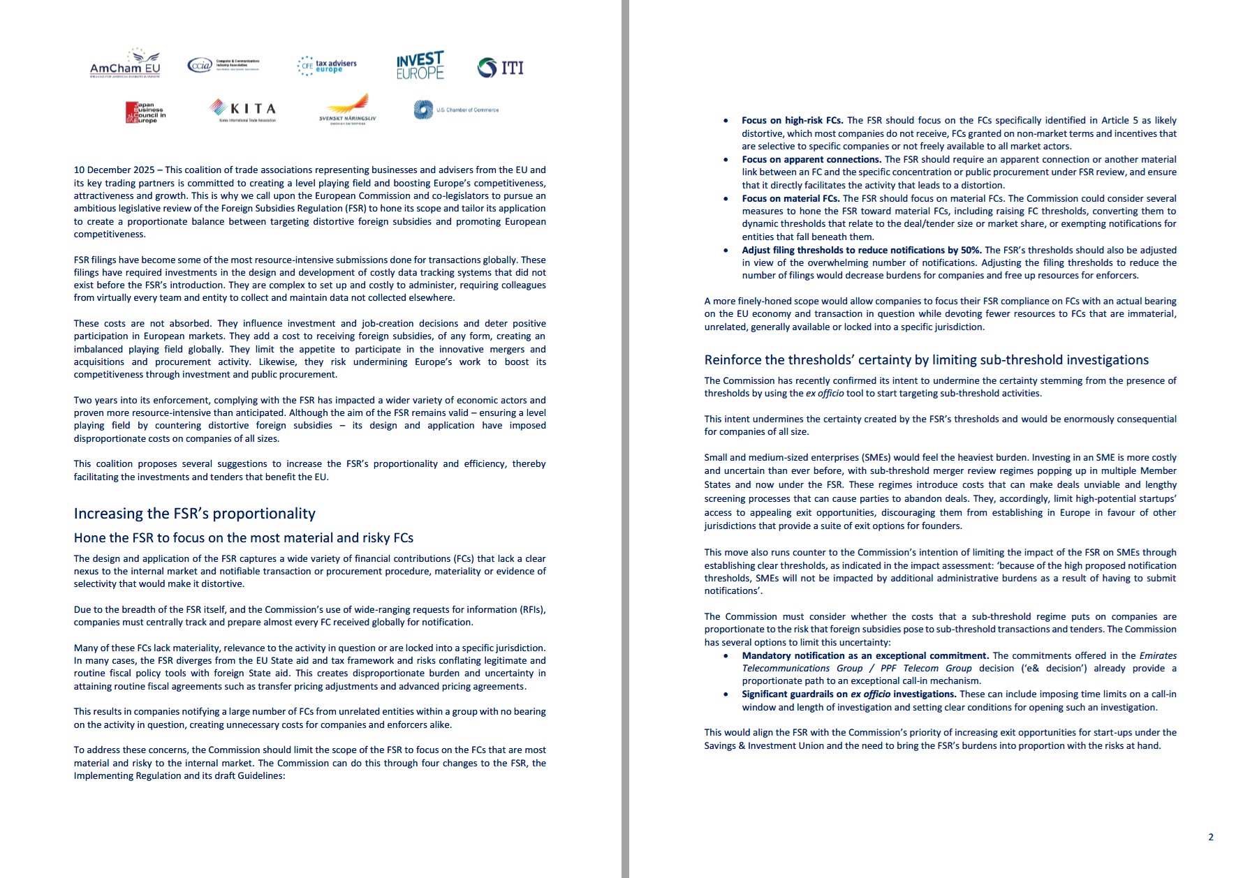 EU 역외보조금 규정(FSR) 관련 제3국 경제단체 공동 성명서 발표(2025.12.10)